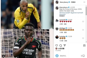 九游体育-亨利社媒祝贺阿森纳淘汰皇马:似曾相识,为小伙子们感到骄傲
